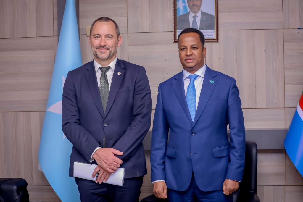 Mogadishu (MFA Somalia) – The Minister of Foreign Affairs and International Cooperation, H.E. Mr. Abdisalam Abdi Ali, received on Monday at his office in the ministry in the capital, Mogadishu, the Head of the International Committee of the Red Cross (ICRC) in Somalia, Mr. Antoine Grand, who paid him a courtesy call to discuss areas of mutual cooperation.